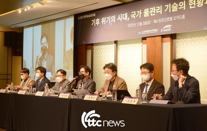 | ▲ 충북대학교 정세웅 교수(사진 왼쪽에서 네 번째)가 좌장이 되어 '기후위기의 시대,국가 물관리 기술의 현황과 도전과제' 종합토론을 진행했다. |