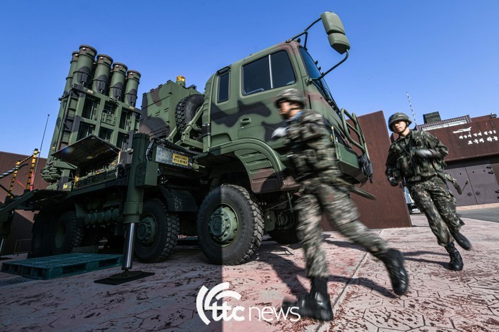 | ▲ 훈련에 참가한 천궁 포대 작전요원들이 천궁-Ⅱ 발사대로 신속하게 이동하고 있다.(tkwls=rhdrns wprhd) |