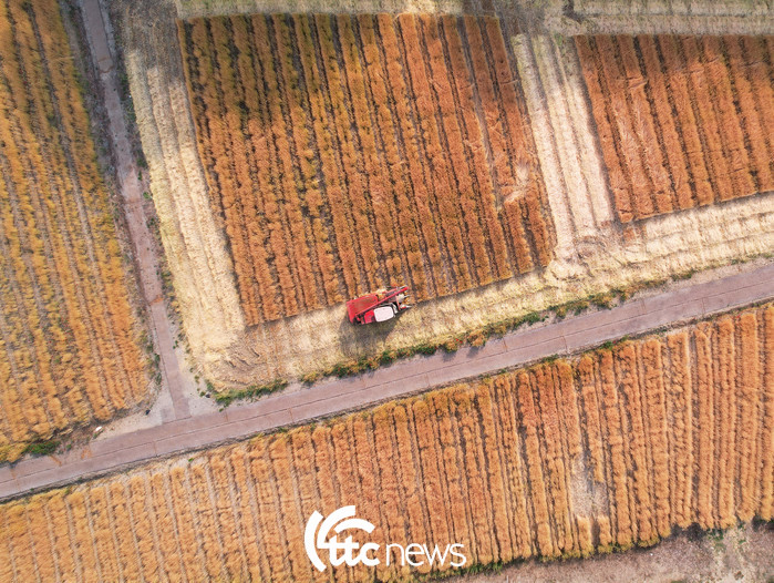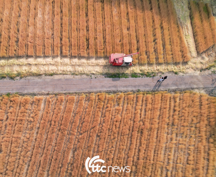 | ▲ 하늘에서 내려다 본 보리베기 현장 |