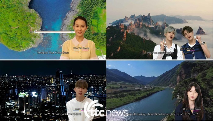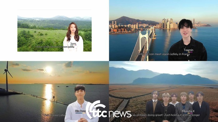 한국관광공사가 전 세계 한류 팬들을 대상으로 유튜브를 통해 선보인 한류스타 출연 코로나19 극복 응원 메시지를 보냈다.