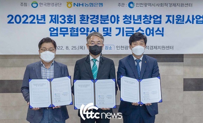 이날 기금 전달식에 앞서 3개 기관을 대표해 한국환경공단 경영기획본부장, NH농협은행 인천영업본부장, 인천광역시 사회적경제지원센터장이 참석하여 환경분야 청년창업 육성을 위한 업무협약을 체결했다. 각 기관의 전문성과 강점을 기반으로 시너지를 극대화하여, 환경문제에 대응하는 다양한 청년기업 발굴·육성을 강화하기로 약속했다.