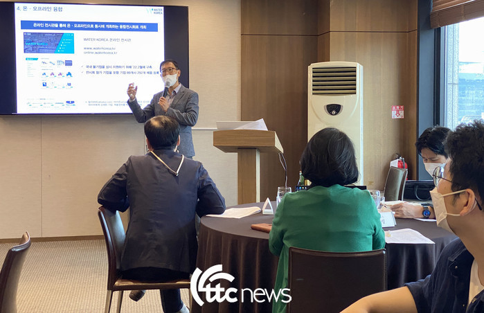 | ▲ 상하수도협회는 18일 서울 세종대로 프레스센터에서 기자간담회를 열고 2022 WATER KOREA의 행사계획을 알렸다. 한국상하수도협회 최동일 소통기획팀장이 전시회의 개요를 설명하고 있다. |