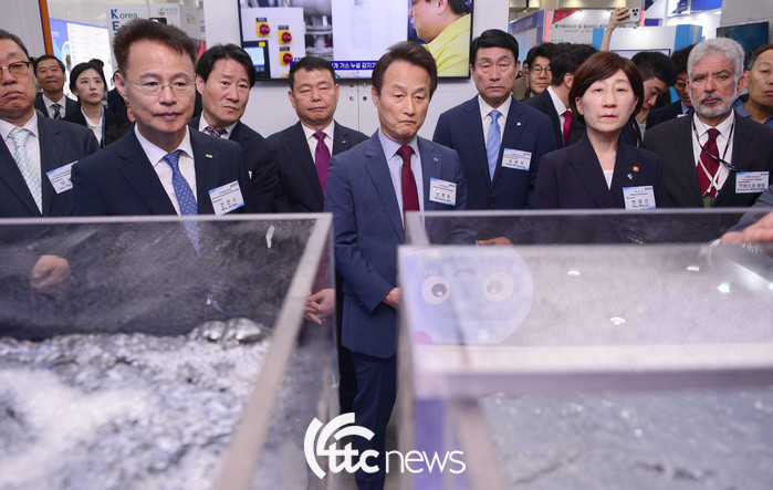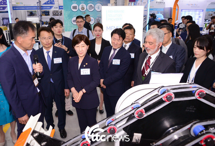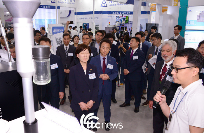 | ▲ 3일 한화진 환경부 장관이 강남구 삼성동 코엑스에서 개막돤 ‘제45회 국제환경산업기술·그린에너지전(엔벡스 2024)을 관람하고 있다. |