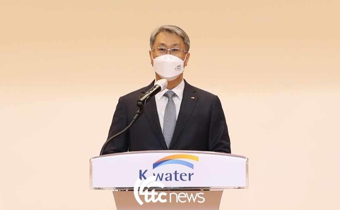 | ▲ 박재현 한국수자원공사 사장이 3일 신년사를 발표하고 있다. 박 사장은 신년사를 통해 2022년을 ‘물-에너지-도시, 그리고 ESG’ 넥서스를 실질적으로 구현하는 원년으로 삼아야 한다고 강조했다.(사진=한국수자원공사 제공) |