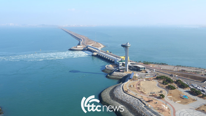 | ▲ 시화호조력발전소 전경, 국내 최대 재생에너지설비를 보유한 물관리 전문 공기업인 한국수자원공사는 시화호조력발전소에서 생산된 재생에너지를 직접전력거래(PPA)를 통해 삼성전자에 공급함으로써 녹색무역장벽을 해소하고, 향후 시화호 주변의 재생에너지 개발사업 공동참여 등 다양한 협력사업을 함께한다(티티씨뉴스 자료사진) |