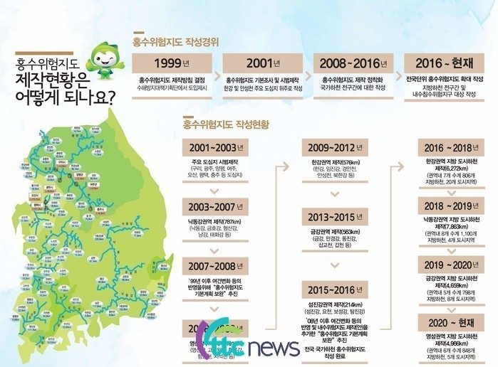지자체는 홍수위험지도를 토대로 자연재해저감종합계획을 수립하고 홍수 시 대피경로 등을 담고 있는 재해지도를 제작하는 등 홍수범람이라는 만약의 경우에도 피해를 최소화하기 위해 대비하고 있다.