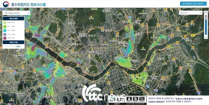 기후위기에 따른 집중호우 발생으로 해마다 홍수 위험성이 증가하는 가운데, 전국민이 홍수로 인한 피해를 예방하고 대응할 수 있도록 홍수위험지도가 공개된다.