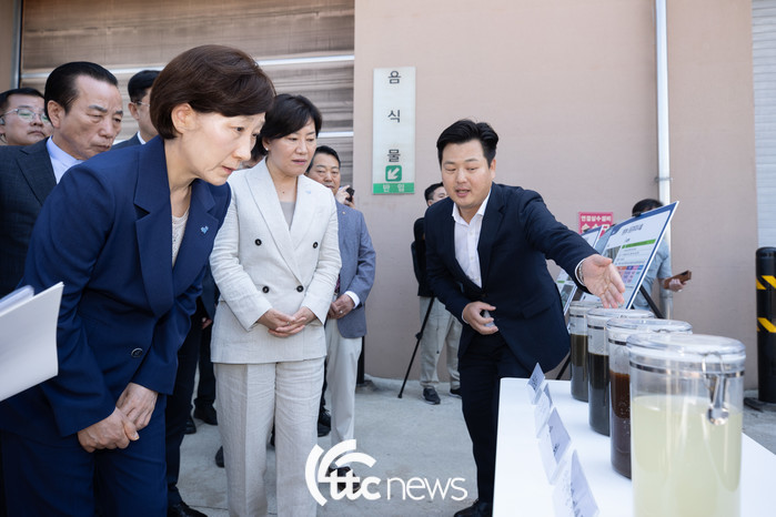 | ▲ 한화진 환경부 장관과 송미령 농식품부 장관(왼쪽 부터)는 31일 충남 논산 계룡축협자연순환농업센터를 방문래 바이오가스 생산시설을 둘러보며 관계자의 설명을 듣고 있다(사진=환경부 제공) |