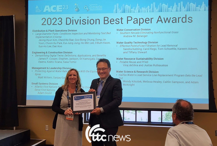 | ▲ 우리나라는 유통 및 플랜트 운영부문에서 '대구경 파이트 상태 점검 및 모니터링 테슽 베드 시행'이 우수 논문상을 수상했다. |