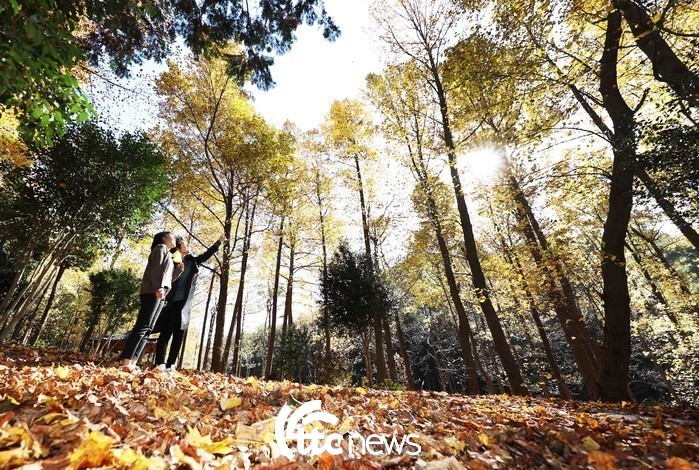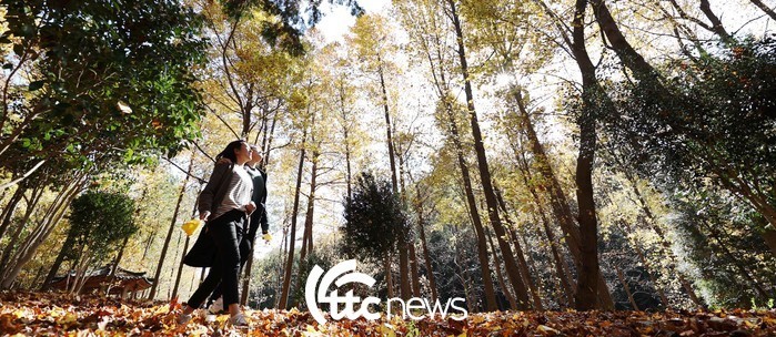 올 가을 들어 가장 추운 날씨를 보인 5일 전남 강진군 칠량면 초당림 백합나무 오솔길이 떨어진 낙엽과 따스한 햇살이 어우러져 차분한 분위기를 연출하고 있다.