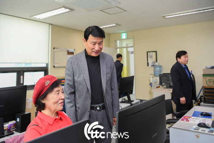 | ▲ 수도권매립지관리공사 송병억 사장(왼쪽 두 번째)은 12일 인천 서구자원봉사센터에서 정보화 소외 계층 지원을 위한 ‘사랑의 PC 기증식’ 행사를 갖고 센터내 시설을 둘러보고 있다(사진=수도권매립지관리공사 제공) |