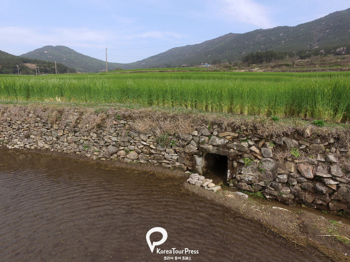 특히 위에 자리한 논에서 아래 논으로 이어지는 지하 암거 구조를 통해 농업용수를 효율적으로 이용할 수 있는 구조의 논이다.