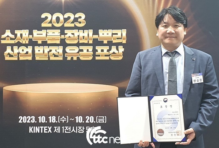 | ▲ 18일 2023 소재부품장비뿌리 산업 발전 유공으로 장관 표창을 받은 (주)오투앤비 반승현 대표는 "최근 EGS경영 및 기후변화와 맞물리면서 큰 문제로 여겨진 고농도 고위험성 이온성 폐수 처리를 친환경적 처리 가능한 특화 기술를 보유한 만큼 국내 산업경쟁력 확보는 물론 세계일류 톱 기업으로 뻗어가겠다."고 말했다. |