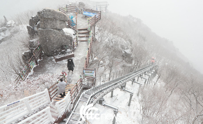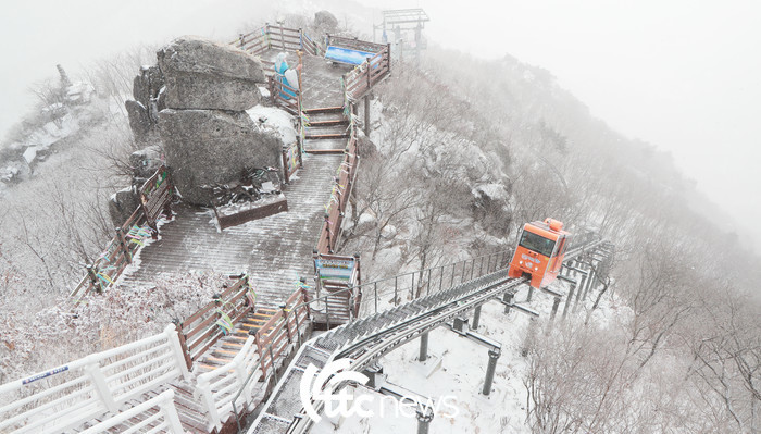 | ▲ 16일 경남 함양군 병곡면 대봉산휴양밸리를 찾은 관광객이 모노레일을 타고 오르며 설산을 구경하고 있다.(사진=함양군 김용만 주무관 제공) |