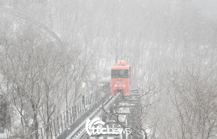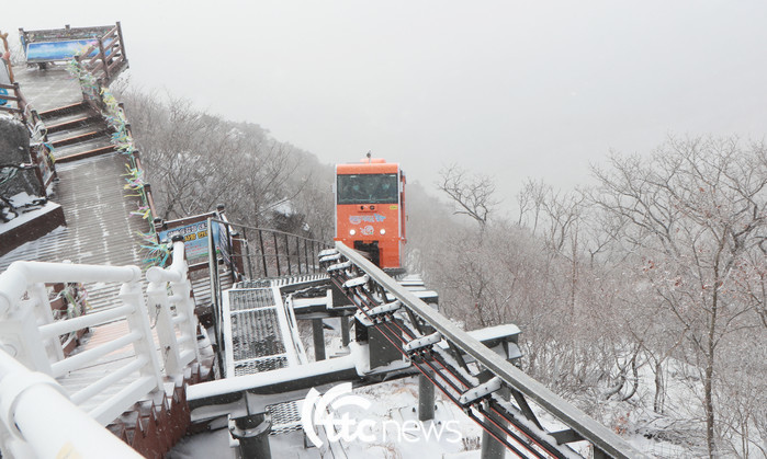 | ▲ 16일 경남 함양군 병곡면 대봉산휴양밸리 모노레일이 눈내린 대봉산을 오르고 있다. (사진=함양군 김용만 주무관 제공) |