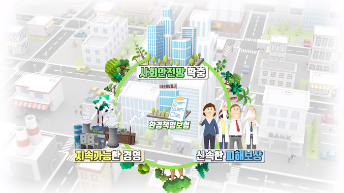 | ▲ 환경책임보험은 환경오염사고시 신속. 공정한 피해자 보상과 사고기업의 지속경영을 지원하여 사회안전망을 구축한다. |