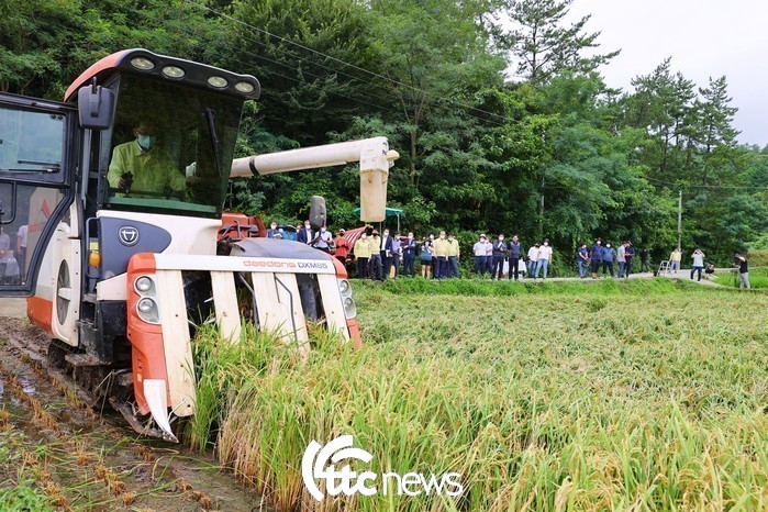 해남군은 3일 북평면 동해마을에서 햅쌀 수확을 위한 벼 베기를 실시했다.