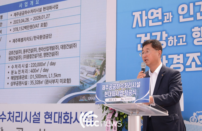 제주의 최대 현안사업이자 지속가능한 미래를 위한 핵심기반시설인 제주 공공하수처리시설 현대화사업이 제주도민과 지역주민들의 성원 속에 15일 첫 삽을 떴다.