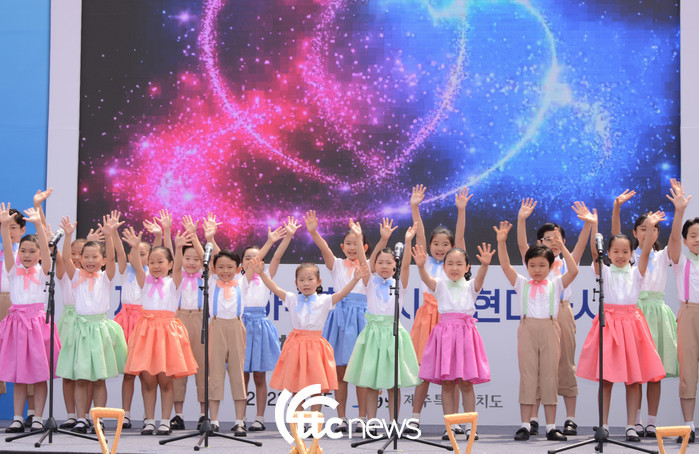 | ▲15일 제주 공공하수처리시설 현대화사업 착공식에서 클럽자자어린이합창단이 축하공연을 하고 있다. |