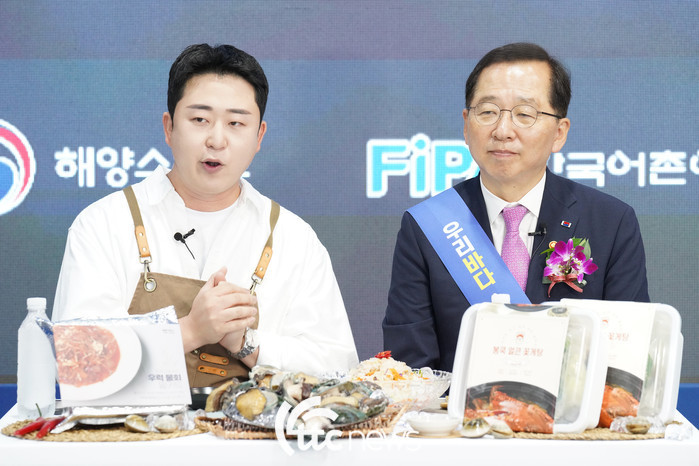 | ▲ 2023 귀어귀촌 박람회가 ‘젊은 어촌,미래를 열다’ 테마로 30일 서울 양재 aT센터 열렸다. 이번 행사는 귀어귀촌 희망인에게 정보 제공,도시민의 귀어귀촌 확대유도로 상담과 전시물을 설치했다. 조승환 해양수산부 장관이 홈쇼핑 방송에셔 국내수산물 안전성을 말하고 있다. |