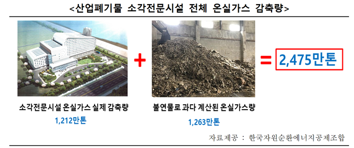 국내 산업폐기물 소각전문시설에서는 폐기물과 함께 타지 않는 불연물이 혼합되어 반입되고 있는데, 이를 사전에 분리하지 못하게 하고 있어 소각로에 그대로 투입되고 있다. 산업폐기물 소각전문시설의 온실가스 발생량은 반입된 폐기물 양을 기준으로 계산되는데 이로 인해서 타지도 않는 돌과 흙, 철 등이 고스란히 온실가스 배출량으로 계산되고 있다.