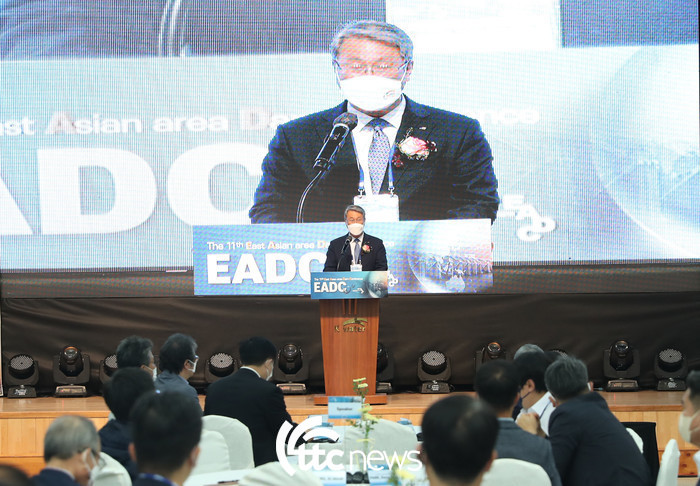 | ▲ 28일 K-water 인재개발원 40주년 기념홀에서 개최된 EADC 심포지엄에서 박재현 한국대댐회장이 기념사를 전하고 있다(사진=한국대댐회 제공) |