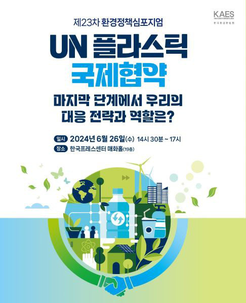 (사)한국환경한림원(회장 허탁)은 26일(수) 서울 한국프레스센터 매화홀(19층)에서 ‘UN 플라스틱 국제협약, 마지막 단계에서 우리의 대응전략과 역할은?’ 이라는 주제로 제23차 환경정책심포지엄을 개최한다.
