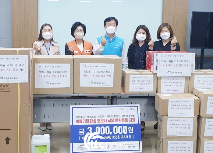 이날 경기동북권지사는 남양주시 선별진료소와 의정부시 예방접종센터, 양주시 보건소 등 3곳에 자동 손소독기, 방역 마스크, 소독제 등 방역물품을 각 100만원 상당, 총 300만원을 지원했다.