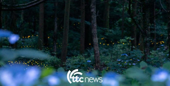22일 밤 서귀포시 중산간 지역에서 반딧불이들이 짝을 찾기 위해 불빛을 밝히며 날아다니고 있다.