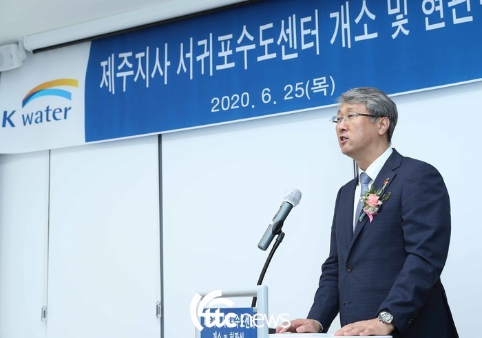 | ▲ 박재현 한국수자원공사 사장은 25일 오후 서귀포센터 개소식에서 “청정제주 전역의 물 문제 해결을 위해 물관리 전문기관의 경험과 기술을 바탕으로 모든 제주도민이 깨끗한 물을 안정적으로 사용할 수 있도록 최선을 다하겠다”고 말했다.(사진=한국수자원공사 제공) |