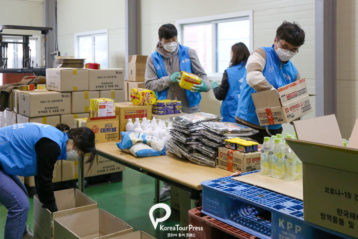 | ▲한국해비타트는 31일 온라인 모금활동을 통해 마련한 2차 긴급생활지원키트 750개를 대구지역의 주거취약계층에 지원했다. 사진은 한국해비타트 직원과 자원봉사자들이 긴급생활지원키트를 포장하고 있다(사진=한국해비타트 제공) |