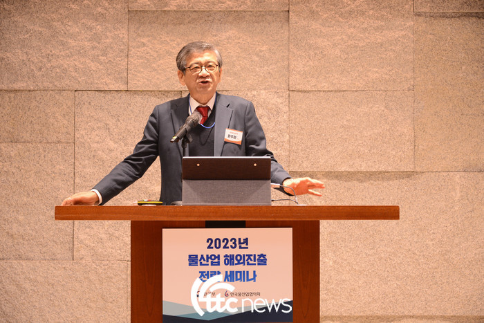 | ▲10일 서울 중구 LW컨벤션에서 개최된 ‘2023년 물산업 해외진출 전략 세미나’에서 윤주환 물산업협의회 회장이 개회사를 전하고 있다. |