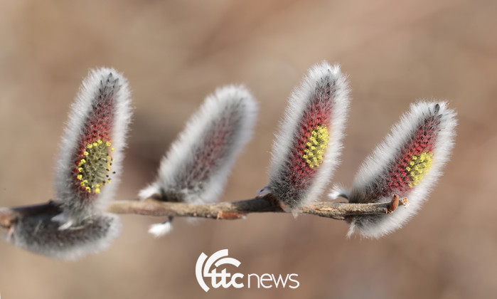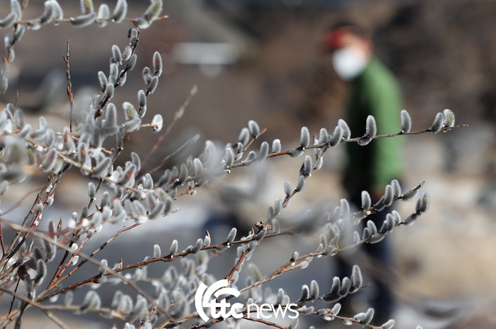 절기상 우수(雨水)를 이틀 앞둔 17일 경남 함양군 마천면 금계마을 앞 엄천강에 버들강아지가 활짝 피어 봄소식을 전하고 있다.