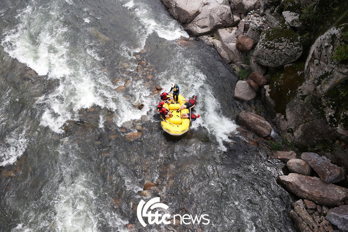 | ▲ 24일 경남 함양군 휴천면 엄천강에서 피서객들이 물살을 가르며 일명 '래프팅'으로 불리는 '계곡급류타기'를 즐기고 있다.(사진=함양군 김용만 주무관 제공) |
