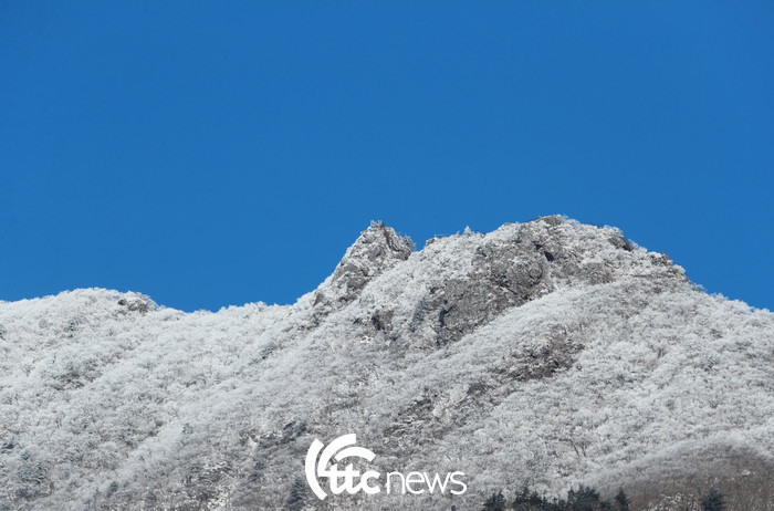 | ▲ 파란 하늘 아래 하얀 옷 입은 남덕유산 14일 경남 함양군 서상면 경남 덕유학생교육원에서 바라본 남덕유산이 파란 하늘과 하얀 눈이 어우러져 아름다움을 연출하고 있다.(사진=함양군 김용만 주무관 제공) |