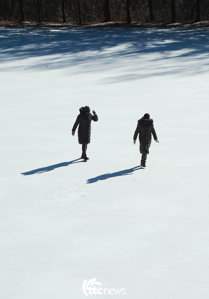 14일 경남 함양군 서상면 경남덕유학생교육원에서 바라본 남덕유산이 파란 하늘과 하얀 눈이 어우러져 아름다움을 연출하고 있는 가운데 산 아래 운동장이 하얗게 변해 겨울 정취를 풍기고 있다.