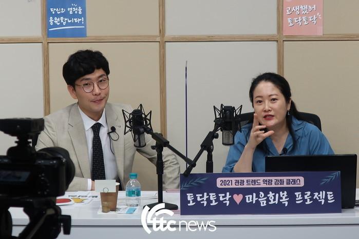 첫 과정으로는 지난 20일 <관광인 토닥토닥 마음회복 프로젝트>를 통해 마음치유전문가 박상미 더공감 마음학교 소장의 코로나 블루 극복을 위한 미니 강연과 랜선 상담이 1시간 동안 유튜브 라이브로 진행되었다.