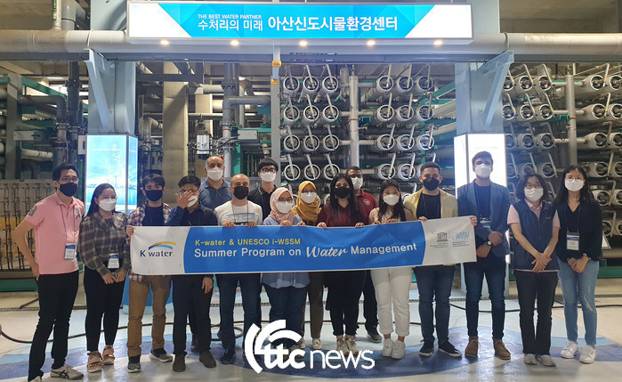 | ▲ 지난 6월 30일 2021 K-water와 UNESCO i-WSSM 공동 국제교육과정 수강중인 국내 거주 개발도상국 공무원 등 유학생들이 한국수자원공사 아산물환경센터에서 물재이용 기술의 현장 시설을 견학하고 있다. (사진=한국수자원공사 제공) |
