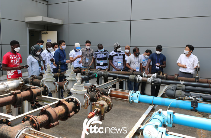 | ▲ KDI에 유학하고 있는 학생들이 지난 6월 25일 대전 유성구 소재 K-water연구원에 설치된 ‘수처리 실증 플랜트’ 시설을 견학하고 있다. (사진=한국수자원공사 제공) |