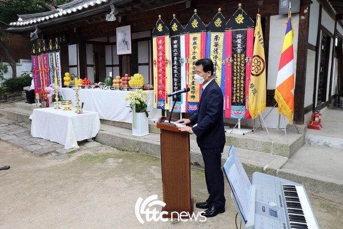 | ▲ 29일 성북동 심우장에서 ‘만해 한용운 선사 77주기 추모다례재’가 진행되었다(사진=성북구 제공) |