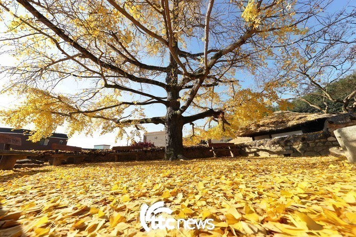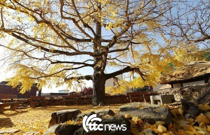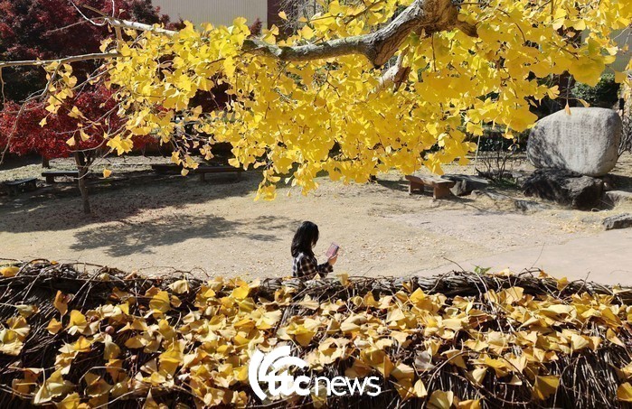 | ▲ 17일 전남 강진군 강진읍 영랑 김윤식 생가(국가 지정 중요 민속자료 제252호) 사랑채 앞 은행나무 주변이 노랗게 물들었다(사진=강진군 제공) |