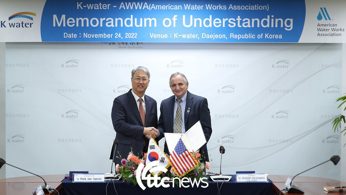한국수자원공사가 24일 대전시 대덕구 본사에서 미국수도협회와 상수도 분야 기술협력을 위해 손을 맞잡았다.