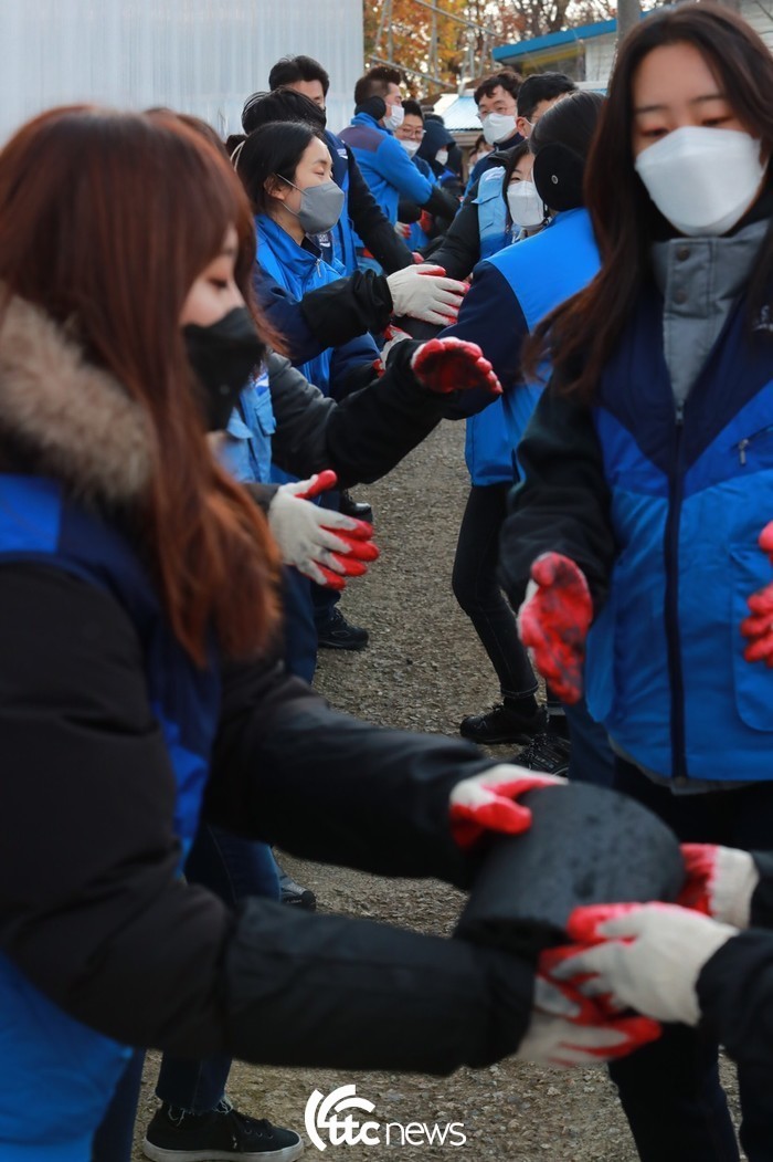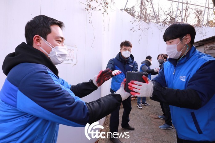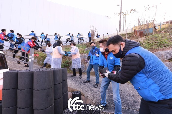 | ▲ 동아오츠카(대표이사 사장 조익성)는 지난 23일 안양시 만안구의 소외된 이웃들에게 연탄을 전달하는 ‘사랑의 이온데이’ 봉사활동을 진행했다.(사진=동아오츠카 제공) |