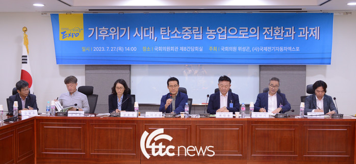 27일 2시 의원회관에서 국회 농해수위원회 소속 위성곤 민주당 의원(서귀포시)과 (사)국제e-모빌리티엑스포(이사장 김대환)는 '기후위기 시대, 탄소중립 농업으로의 전환과 과제' 토론회를 개최했다.