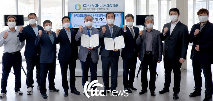 | ▲ 건전한 물순환체계 구축을 위한 업무협약 체결 후 하승재 한국물순환협회 회장(사진 왼쪽에서 여섯 번째)과 한국그린인프라·저영향개발센터 신현석 센터장(다섯 번째)이 양 기관 관계자들과 기념촬영하고 있다(사진=한국물순환협회 제공) |