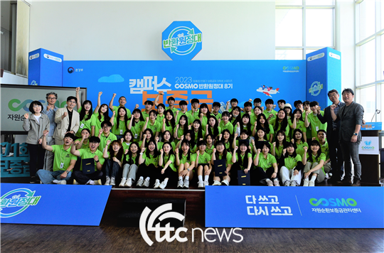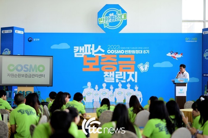 자원순환보증금관리센터는 24일 오전 1회용 컵 보증금제도가 선도 시행되고 있는 제주도 내 일성비치콘도(제주시 한림읍) 3층 스카이라운지홀에서 2023 1회용컵·빈용기 보증금제 대학생 서포터즈 ‘반환원정대 8기’ 발대식을 개최하고 활동 시작을 알렸다.