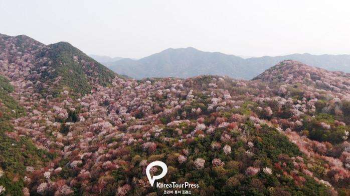 9일 담양군 금성면 외추리 고비산 산자락에 활짝 핀 산벚꽃이 신록과 조화를 이뤄 한 폭의 산수화 같은 풍경을 자아내고 있다.(사진=담양군 제공)