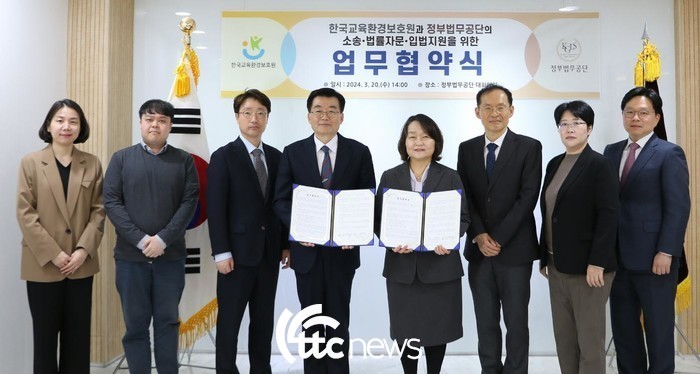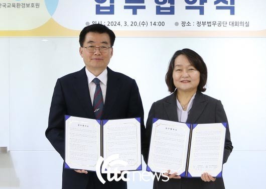 한국교육환경보호원(원장 조명연)과 정부법무공단(이사장 조희진)은 20일 정부법무공단 대회의실에서 법률 자문·지원 업무협약을 체결했다.