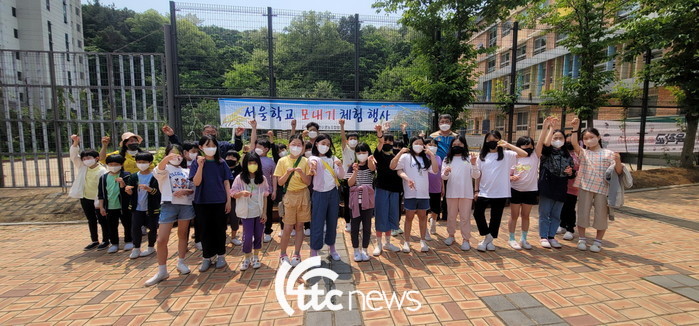 | ▲ 해남군은 서울시 학교급식 친환경쌀 공급업체로 선정된 인수영농조합법인, 땅끝황토친환경영농조합법인과 함께 서울시 소재 18개 초등학교에 친환경 벼 체험포를 설치하고 모내기 체험도 실시했다. |