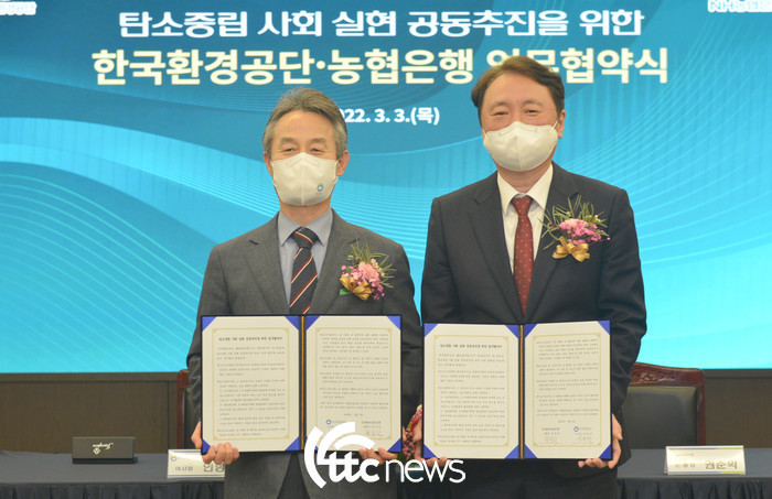 한국환경공단은 3일 농협은행 본사에서 탄소중립 사회 실현 공동 추진을 위한 업무협약을 체결했다고 밝혔다.